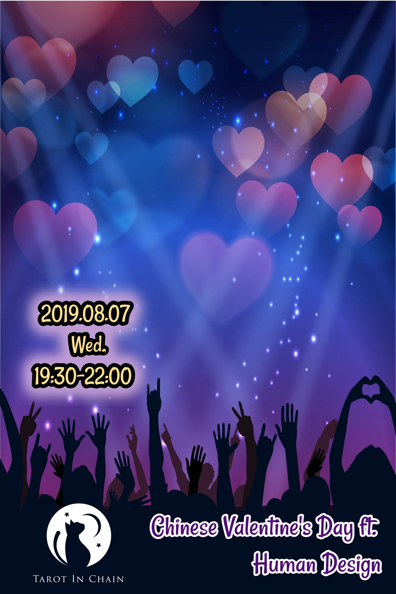 鏈上塔羅幫大家準備好認識新朋友的場合,讓你有啤酒喝、有東西吃,有課能上、聊天、玩遊戲、認識朋友之外,還可以唱歌。講師會幫大家上一些簡單的人類圖入門課程,之後藉由遊戲問答的方式增加記憶點,讓大家在溫馨的場地、歡樂的氣氛中度過一個充實美好的七夕情人節。