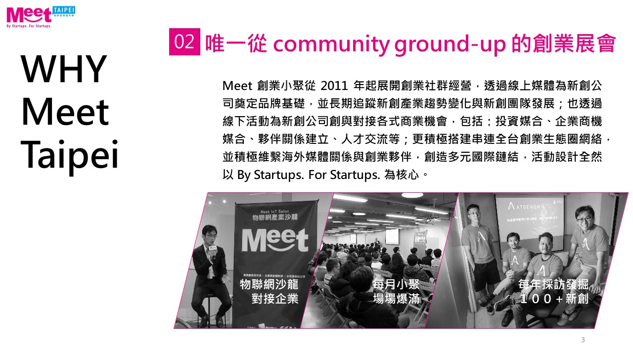 ※ 新創參展洽詢: (02)8773-9808 ext.201 林先生|ext.232 江先生 |來信洽詢 meettaipei@bnext.com.tw