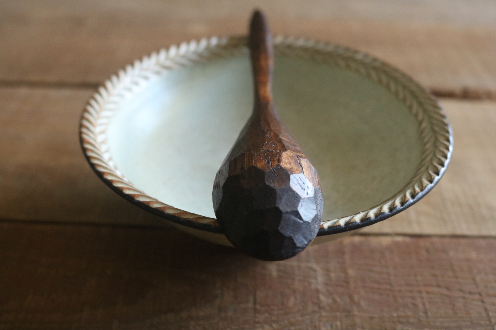 曲線優美的木匙方便撈取碗底的食物,而厚薄適中講究的湯匙面,就口時將會成為貼合自己的體感,宛如長年用慣的老朋友。課程中學會基本款的造型後,接著是進階的刻紋變化,在湯匙上刻出六角形排列的經典刻紋,並解析木器不同塗裝方式的優缺點。