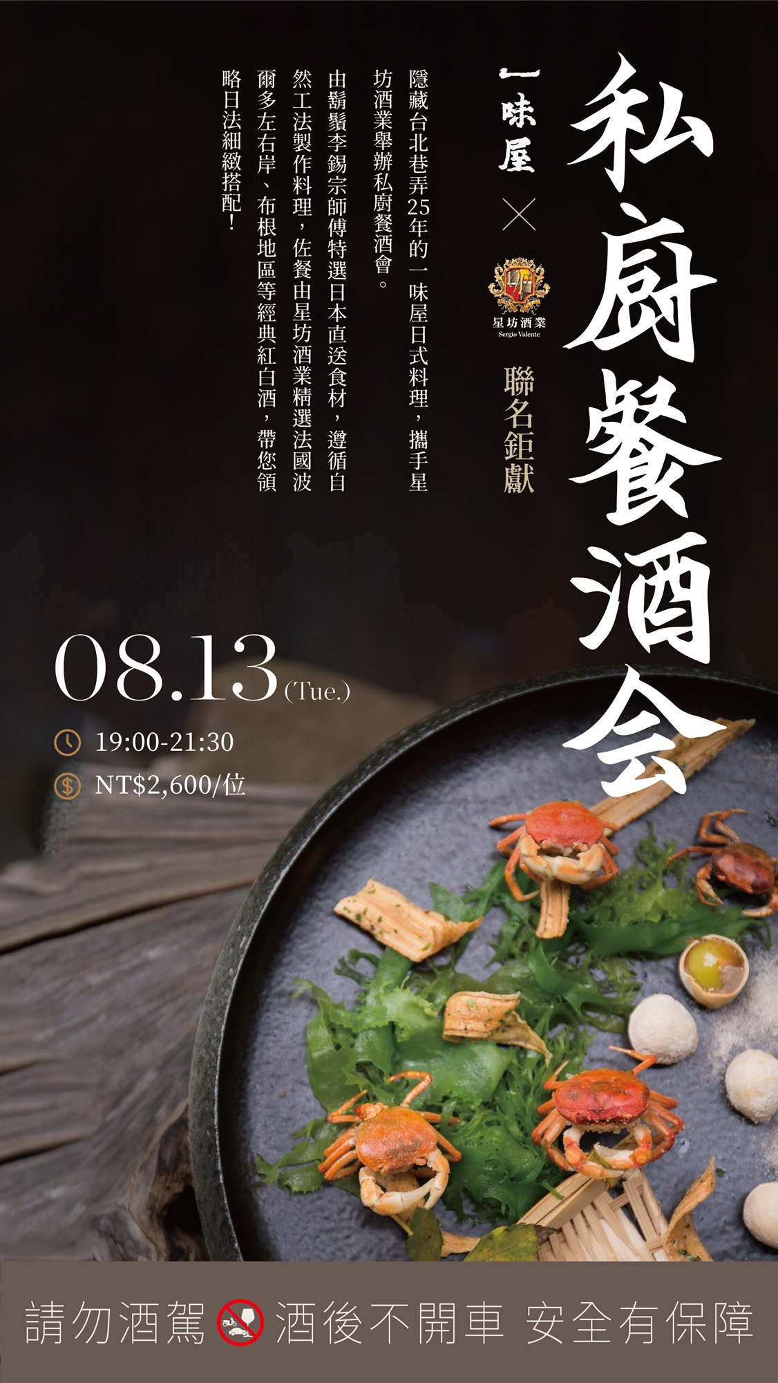 隱藏台北巷弄25年的一味屋日式料理,攜手星坊酒業舉辦一場私廚餐酒會。