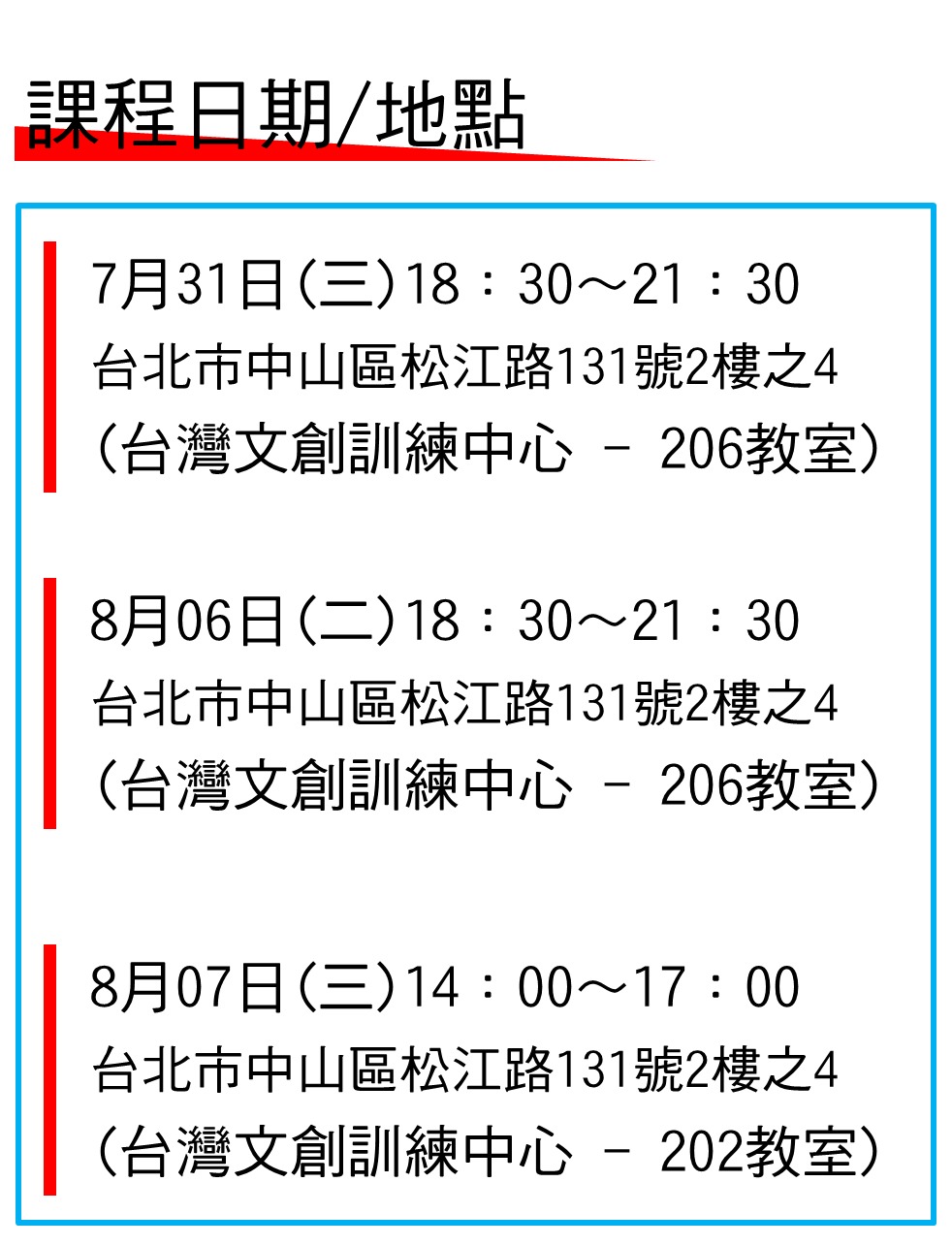 SN206教室 -捷運松江南京站7號出口走路3分鐘