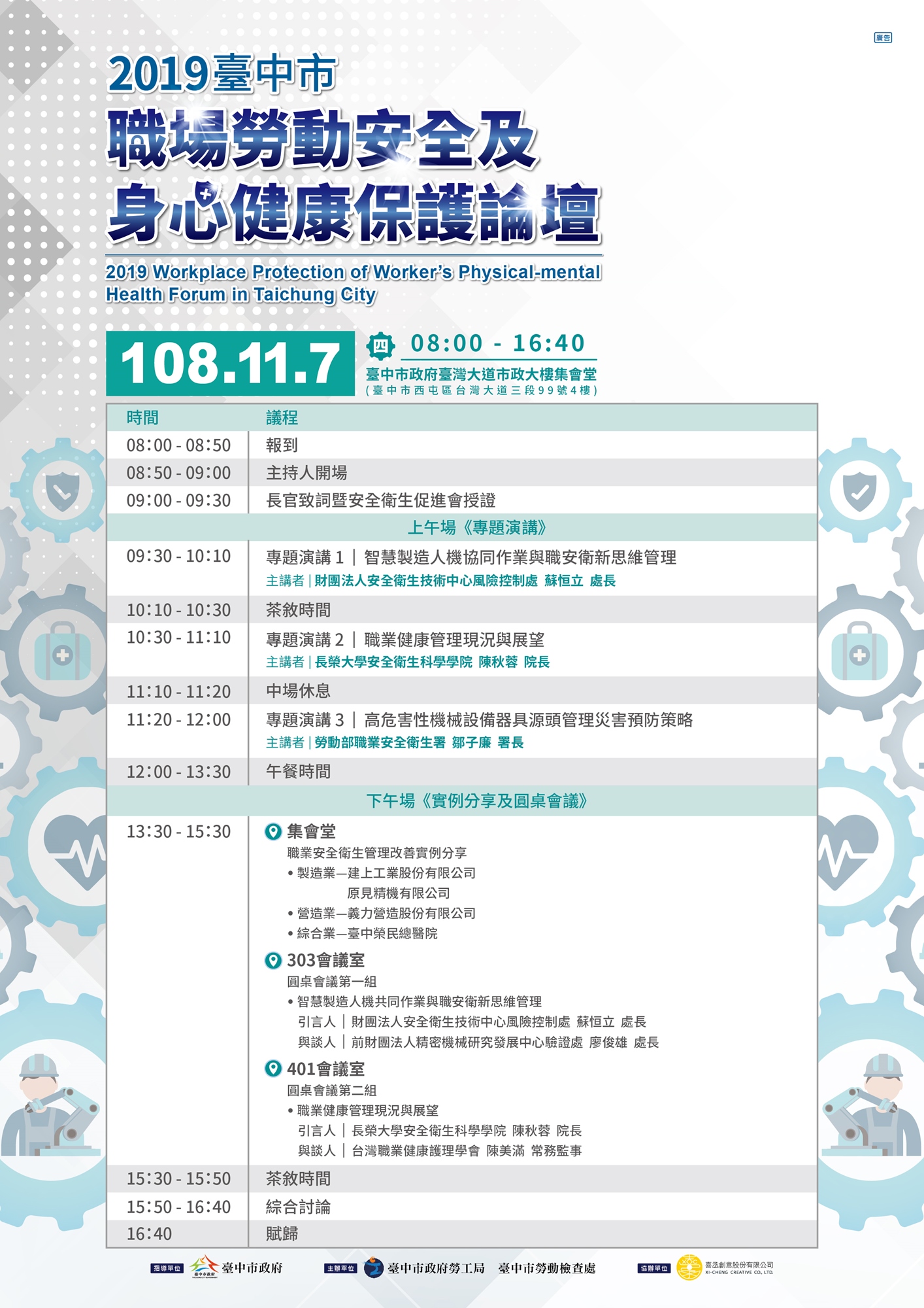 主辦單位:臺中市政府勞工局、臺中市勞動檢查處