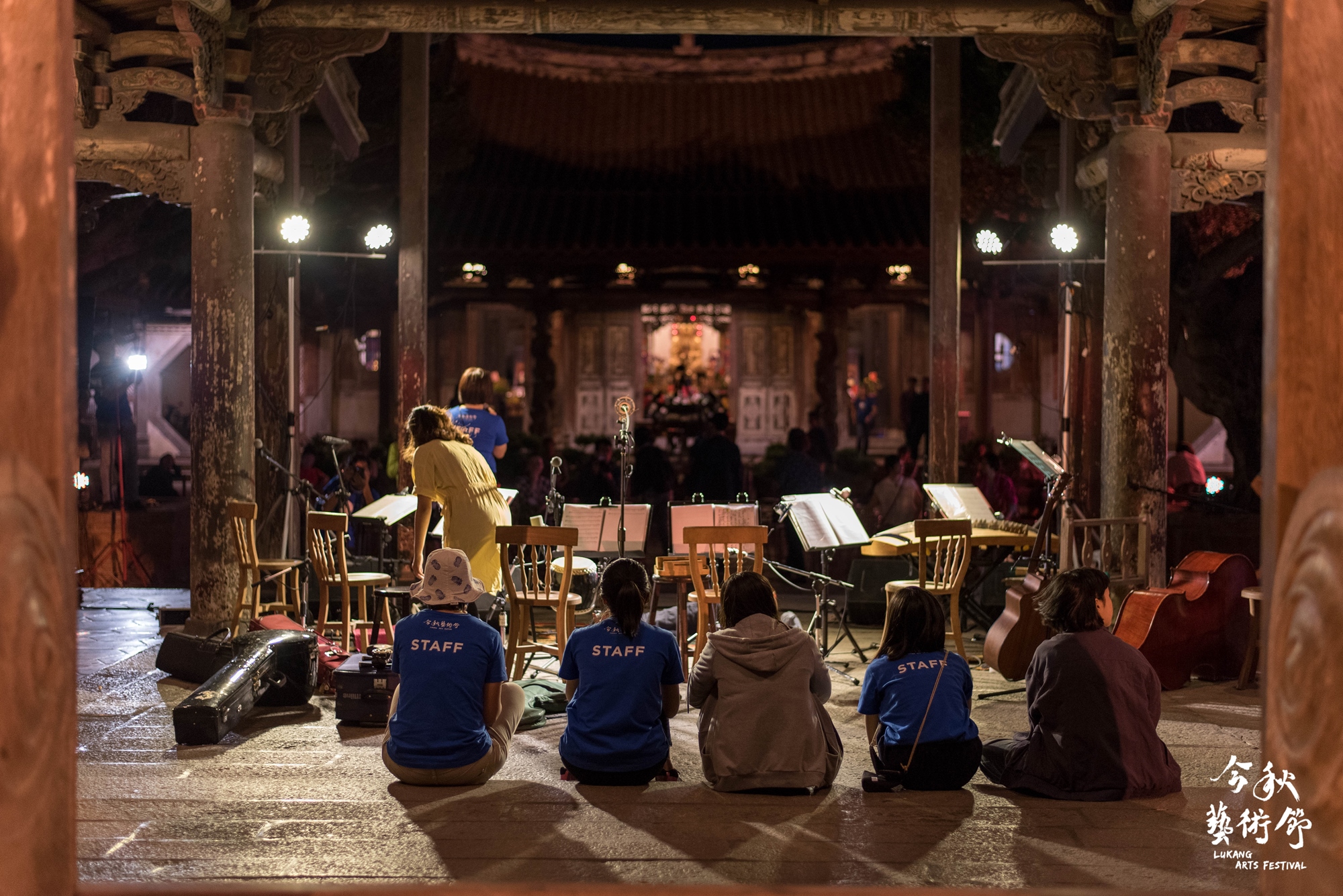 開幕日當天的下午,由鹿港學哥帶路,帶著大家從藝術村35號出發經過老街、市場、九曲巷、丁家大宅、鹿港民俗文物館(辜宅)、石廈街到龍山寺。沿途經過藝術節的三個展場,藝術村35號空間、丁家大宅、板店街實驗空間。另外今年也時逢辜宅100週年,特別在開幕日小旅行安排拜訪辜宅,一看洋樓的百年風華。最後,來到當天的重頭戲開幕音樂會的會場-龍山寺。