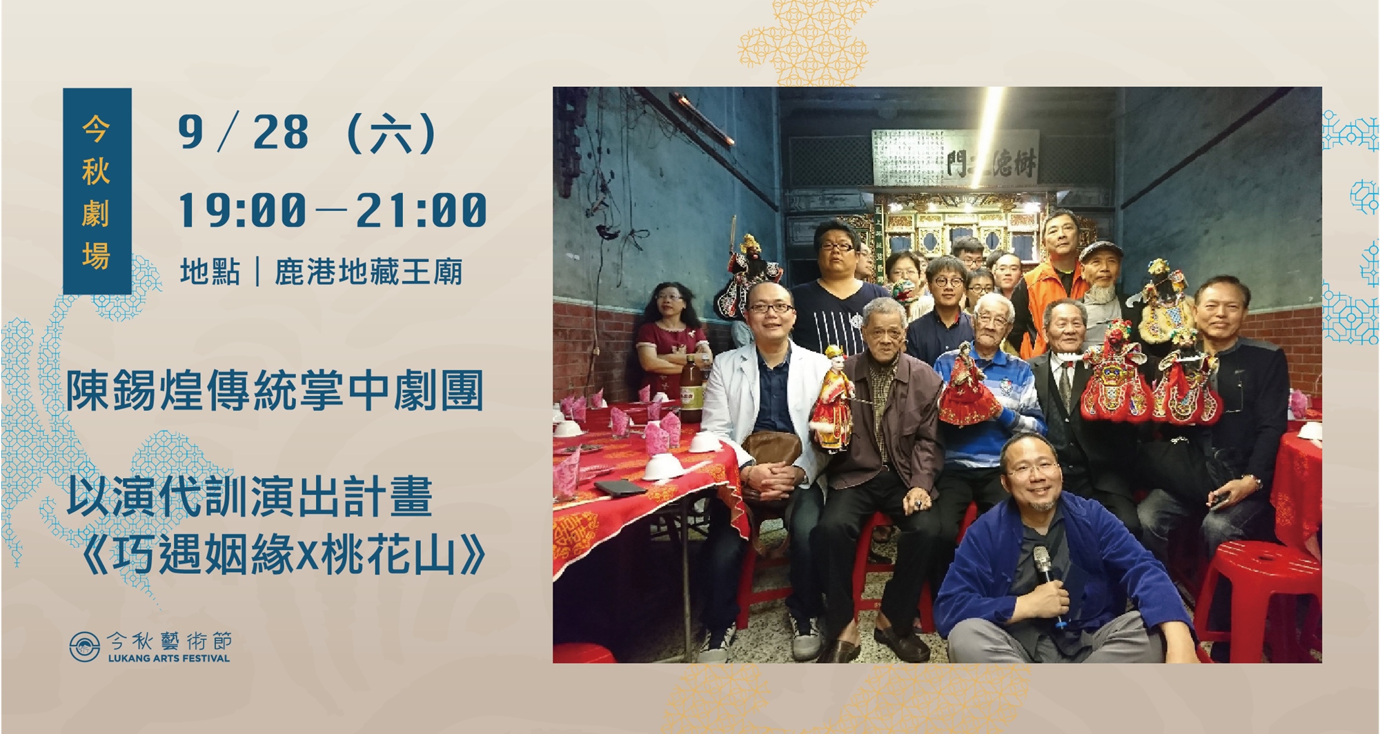 當天導覽結束後,石老師會帶大家一起來鹿港地藏王廟廟埕,觀賞由陳錫煌傳統掌中劇團帶來的《以演代訓演出計畫「巧遇姻緣x桃花山」》,陳錫煌老師是台灣唯一獲得文化部「重要傳統藝術布袋戲類保存者」、「古典布袋戲偶衣飾盔帽道具製作技術保存者」。