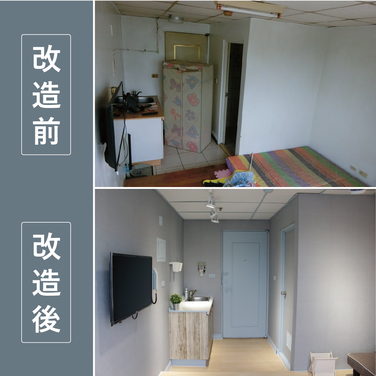 這是一間5坪大小的租屋套房,壁紙+塑膠地板施工時間大約5小時