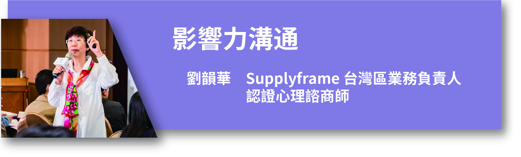AMA邀請到Supplyframe 台灣區業務負責人同時也是認證心理諮商師 劉韻華,為千禧世代Young Talent 自主學習系列帶來充滿影響力的『影響力溝通』!
