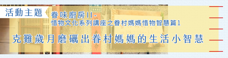 活動主題:眷味廚房II-惜物文化系列講座之眷村媽媽惜物智慧篇1