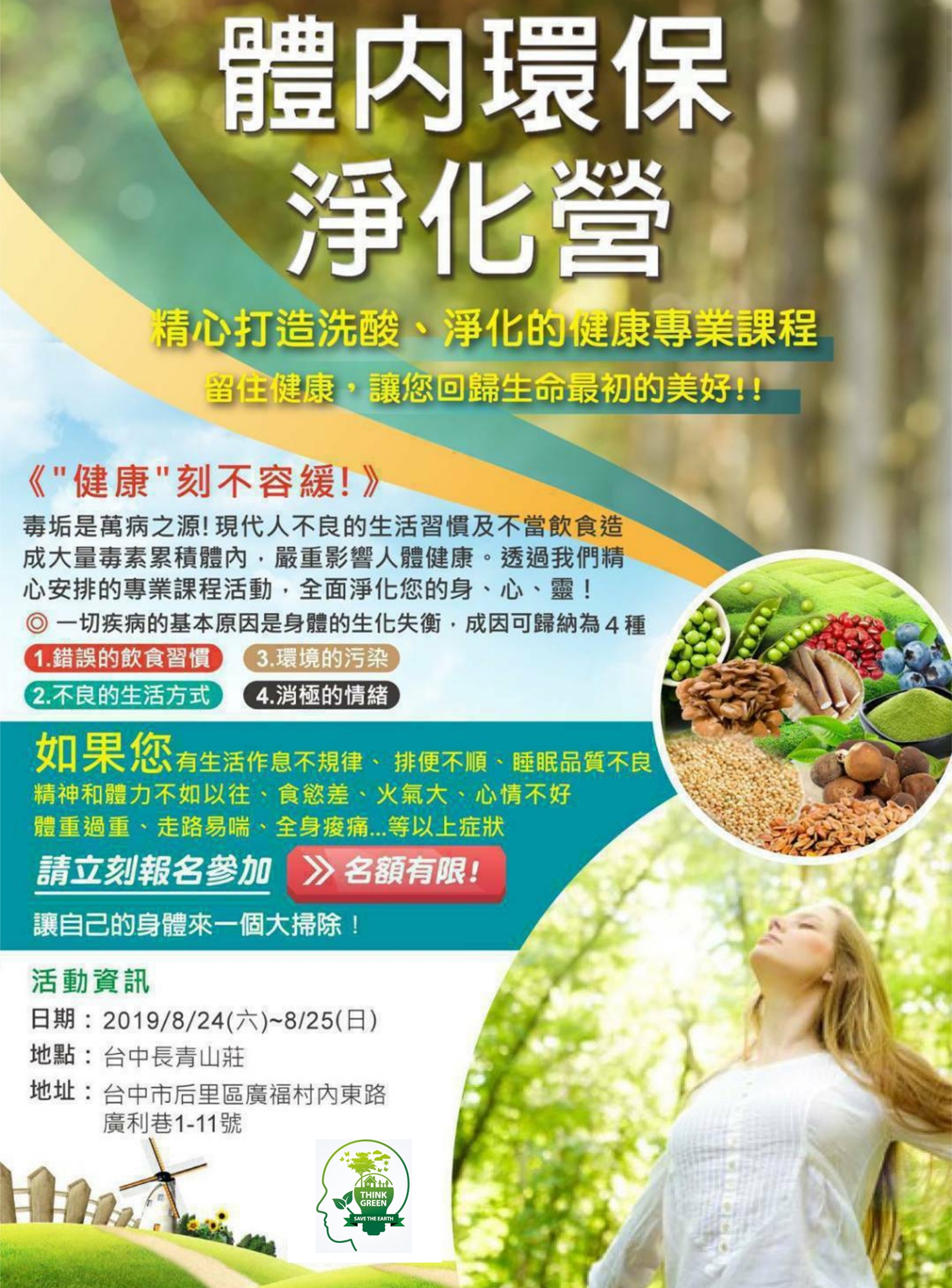 8/24~25 將在中台灣舉辦兩天的體內環保淨化營