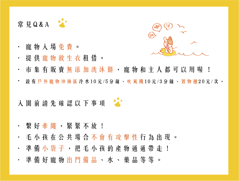 現場提供「寵物救生衣」出租,如需借用請洽工作人員!