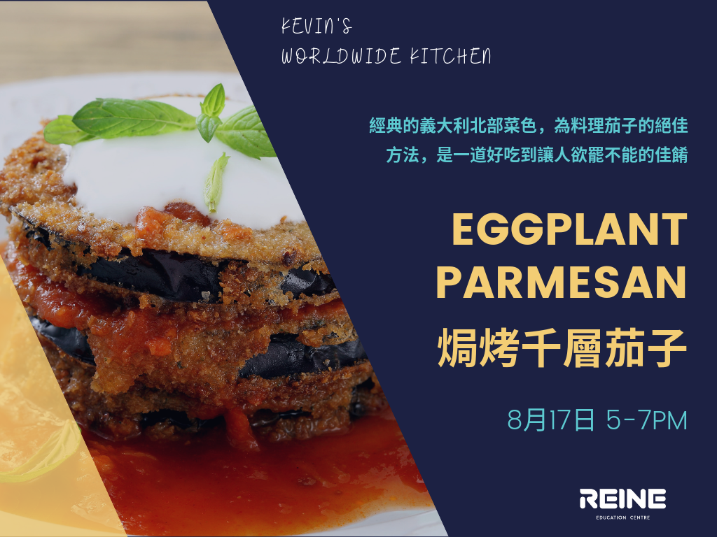 快來瑞軒一起陷入這道好吃到令人欲罷不能的焗烤千層茄子吧! Eggplant Parmesan 義大利文為parmigiana di melanzane,是義大利到處都可以看到的家庭必備料理,沒有去過義大利沒關係,來跟Kevin老師一起做這道經典料理,讓味蕾馳騁於義大利的氣味中吧。