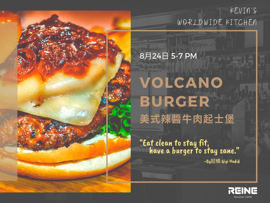 Volcano burger,故名思義是吃了會噴發的漢堡,不管是起士噴發、肉汁噴發或是好吃度噴發。Kevin老師這次要教大家辣醬牛肉起士堡,香濃起士、鮮嫩多汁的牛肉配上特製辣醬,一定會讓你們吃完後舔舔手指上的餘味。