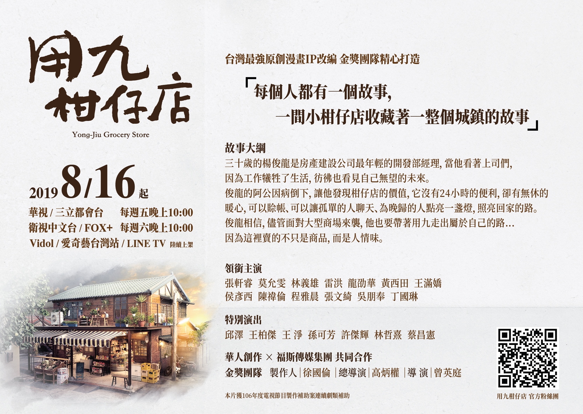 俊龍的阿公因病倒下,讓他重新發現了柑仔店的價值,這裡沒有24小時的便利,卻有永久的暖心,手頭緊的人可以賒帳,孤單的人可以聊天,放學的孩子可以安心等晚歸的父母,做工的人有了盞照亮歸途的燈。儘管面對大型商場的強勢進駐,俊龍依然堅定地帶領用九柑仔店,走出一條屬於自己的路…因為這裡賣的不只是商品,而是人情味。