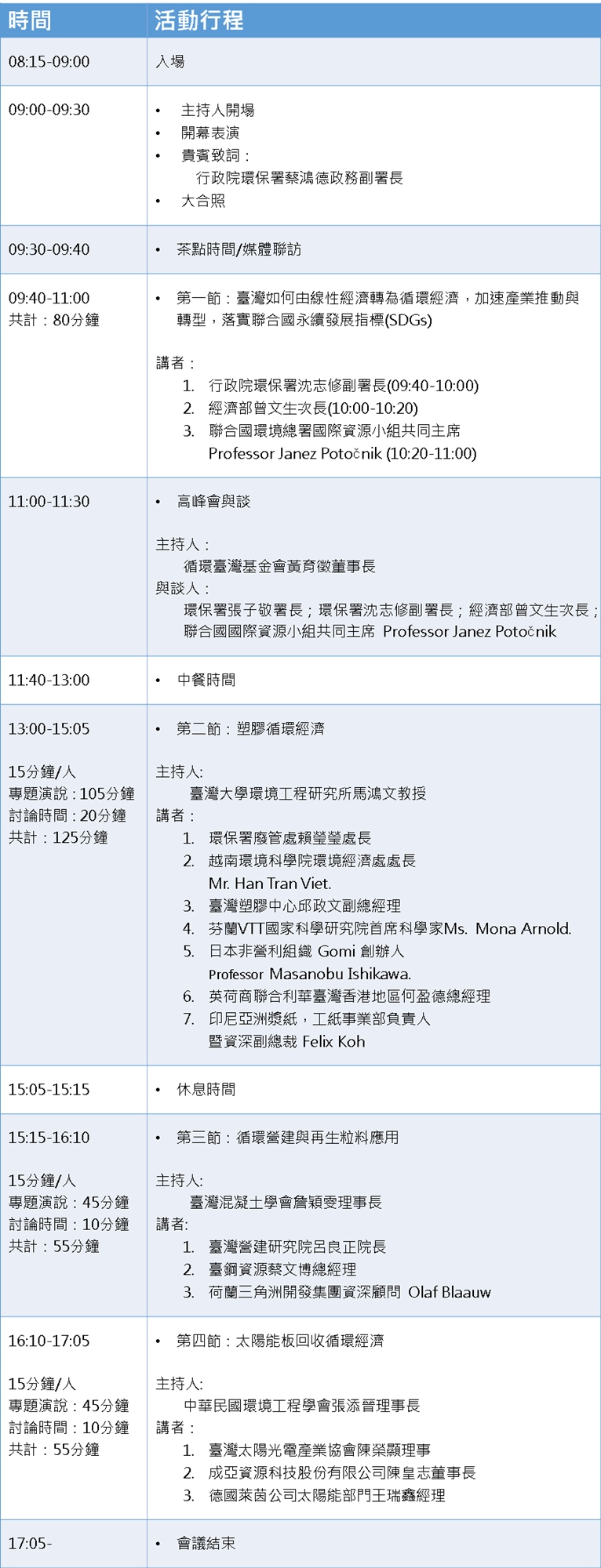 來自亞洲及友邦國家官員與產業代表將針對塑膠、營建、太陽能設施等議題進行循環經濟政策研究與亮點作為,並透過人才培訓與交流,落實政策實踐與行動