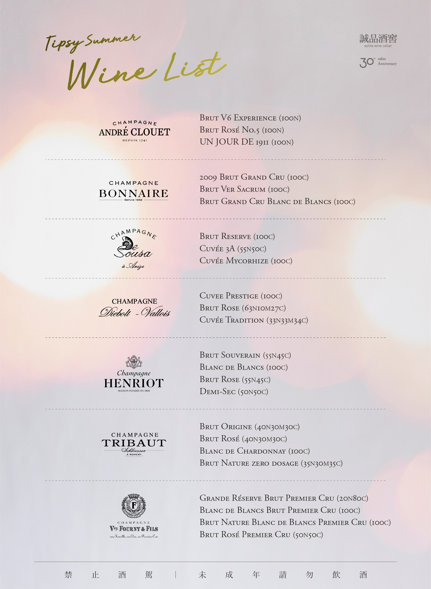 - 可自由決定品酒順序與時間,並於活動時段自由進出。