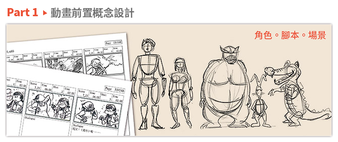 - 角色動態速寫,故事發想與討論,腳本製作形式。