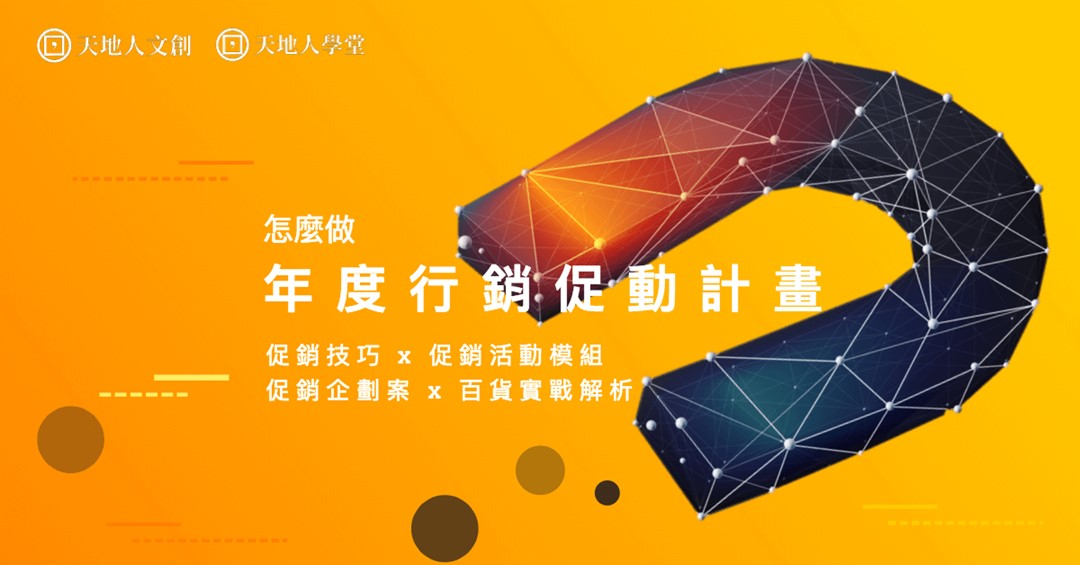 促銷,不是毒藥,是行銷活動裡重要的工具環節。只是應該要怎麼做? 如果只是亂無章法的執行,不只是沒有效果,更會嚴重傷害到品牌價值。 天地人規劃出「年度行銷促動計畫怎麼做?促銷技巧 x 促銷活動模組 x 促銷企劃案 x 百貨實戰解析」課程,邀請曾擔任時尚女裝集團副總經理親授課程,業師將深入淺出以實際案例,建立促銷年度計畫的核心技能: (1)解析各類促銷的對象與力道;(2)學會促銷企劃案的架構與操作法;(3)建立掌握消費脈動的年度販促計畫與實際執行要點技巧。業師將協助品牌營銷人員掌握消費者軌跡與心理,根據自身品牌能耐的優劣勢,運用最有效的促銷模組,做出最佳的年度行銷促動計畫!