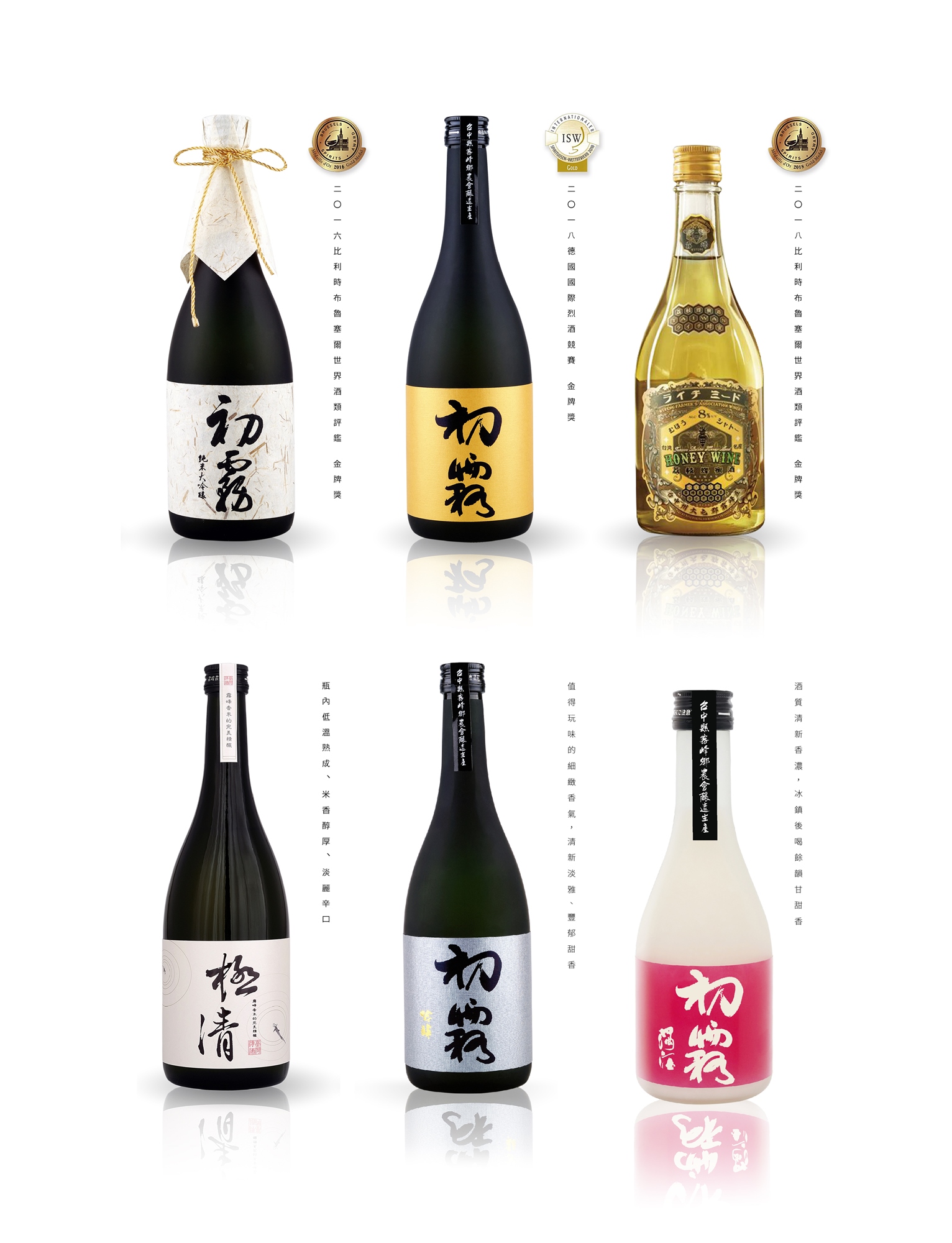 - 初霧純米大吟釀:榮獲比利時布魯塞爾世界酒類評鑑 2016 金牌獎