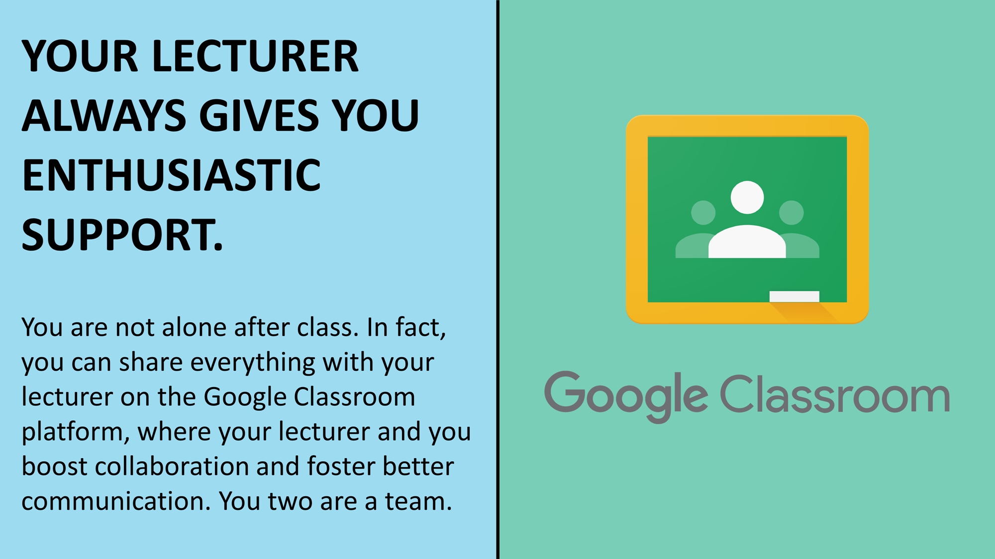 「師父領進門,修行在個人」在本課程絕不是你交錢、我收錢,你流著汗水、我喝著汽水。我們是一個任務團隊,你的成績是我們的合作成果,而且合作是逐日累積的:我教你理解、你學會記憶,我示範你如何應用、你練習、我回饋,你設法精熟、我幫你找漏洞。你的讀書衝勁會受我的指導熱忱影響,無論如何一起走向未來考到理想分數的那一天。課間我們會在Google Classroom一對一虛擬教室互動。雙方時間許可,不時會有Skype Hours,授課進度或演練皆可。