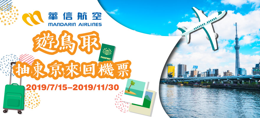 ▶活動獎項:華信航空台中-東京來回機票二名。