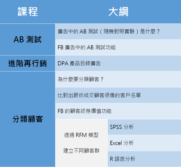 ※本課程難度較高,若有興趣,建議先參與10/20舉辦的【FB廣告投放進階班】。