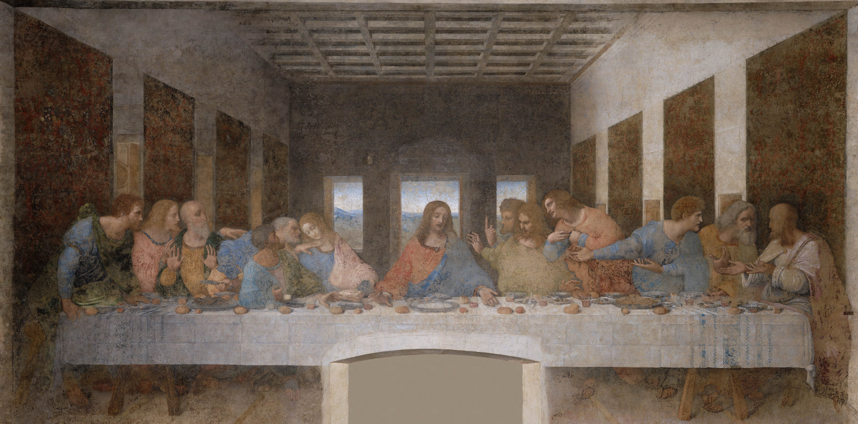 1483年,達文西(Leonardo Da Vinci, 1452-1519) 離開翡冷翠前往米蘭,擔任史佛札大公(Ludovico Sforza)的宮廷藝術家,在他停留將近20年的晚期1495~97年,他應大公之請為感恩聖母院(Santa Maris della Salute) 的餐室,繪製了一件寬度將近9公尺的巨幅壁畫──《最後的晚餐》(The Last Supper,1495-97)。時至今日,大師的傑作以《蒙娜麗莎》最為知名,但大師藝術生涯中最重要的作品,卻應數這件早於《蒙娜麗莎》10年之前畫成就已震驚義大利,隨後更以構圖創新聞名全歐、刻劃人類心理最為深刻的群像鉅作。