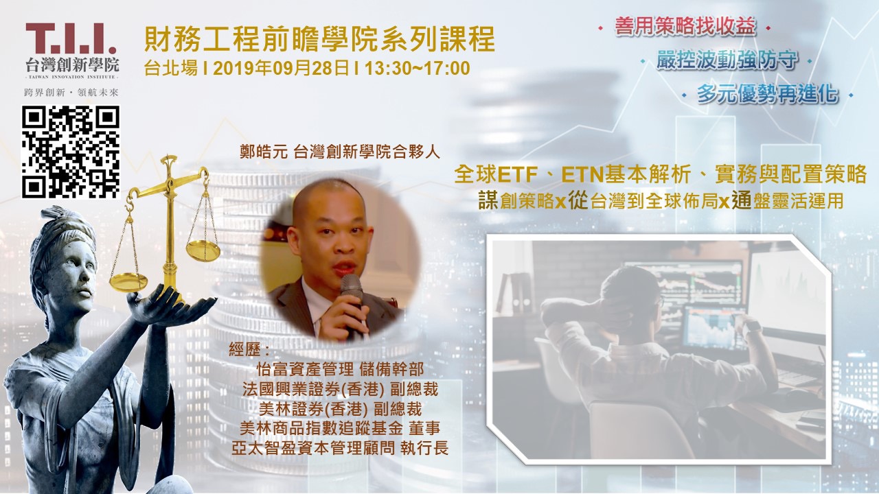 本次系列課程內容源自於金融工程前瞻研訓院團隊透過近二十年專業化的投資管理經驗,結盟股狗網、AINDEX、國內知名金融資訊軟體公司等機構打造了龐大的市場資訊資料庫及雲端資訊回測系統綜合平台系統,透過不同來源的資料蒐集,及大數據分析、機器學習與人工智慧,整合分析出當前市場環境可能發生的情況,並透過公司團隊以主動、有效、即時、精準的分析萃取相關分析資訊,來安排此次系列課程。期許本次系列課程的安排,能做為投資機構及個人投資人在資產管理業務上的有效輔佐工具。