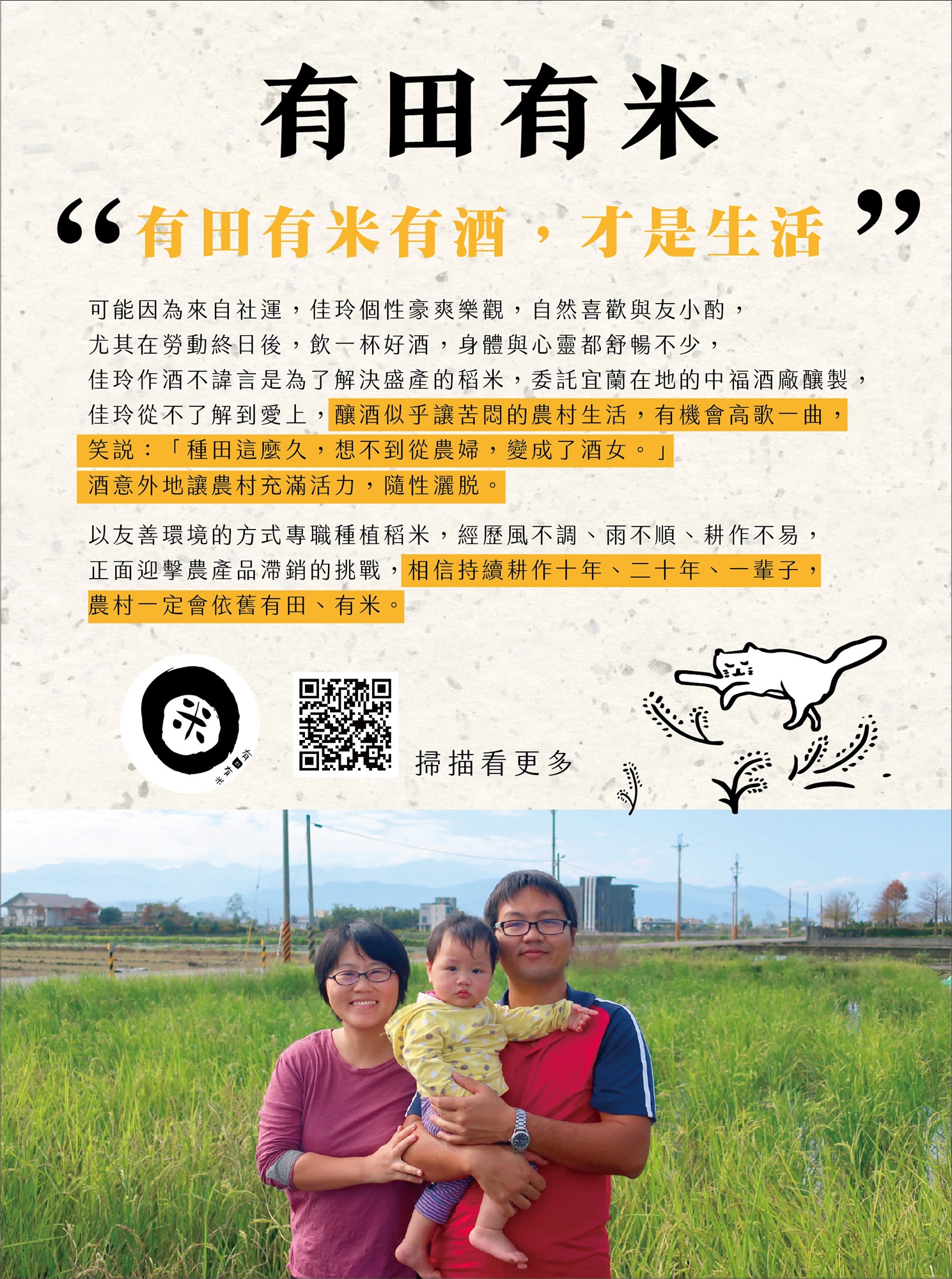 有個性滿滿的小農,與個性滿滿的農產,讓『地酒文化』正在臺灣的土地萌芽,在日本『地酒文化』與生活緊密結合,農夫耕種在地米種,提供給在地小規模酒造釀酒,發展出獨具特色的在地酒品,日本的食堂、居酒屋、料亭也有可搭配的餐食料理,『地酒文化』不追求經濟生產,而是風土與人文的結合,正好合適臺灣農村小而多樣性的特色,從這作為起點,開始發展屬於臺灣的『地酒文化』;讓好酒,從此相見!