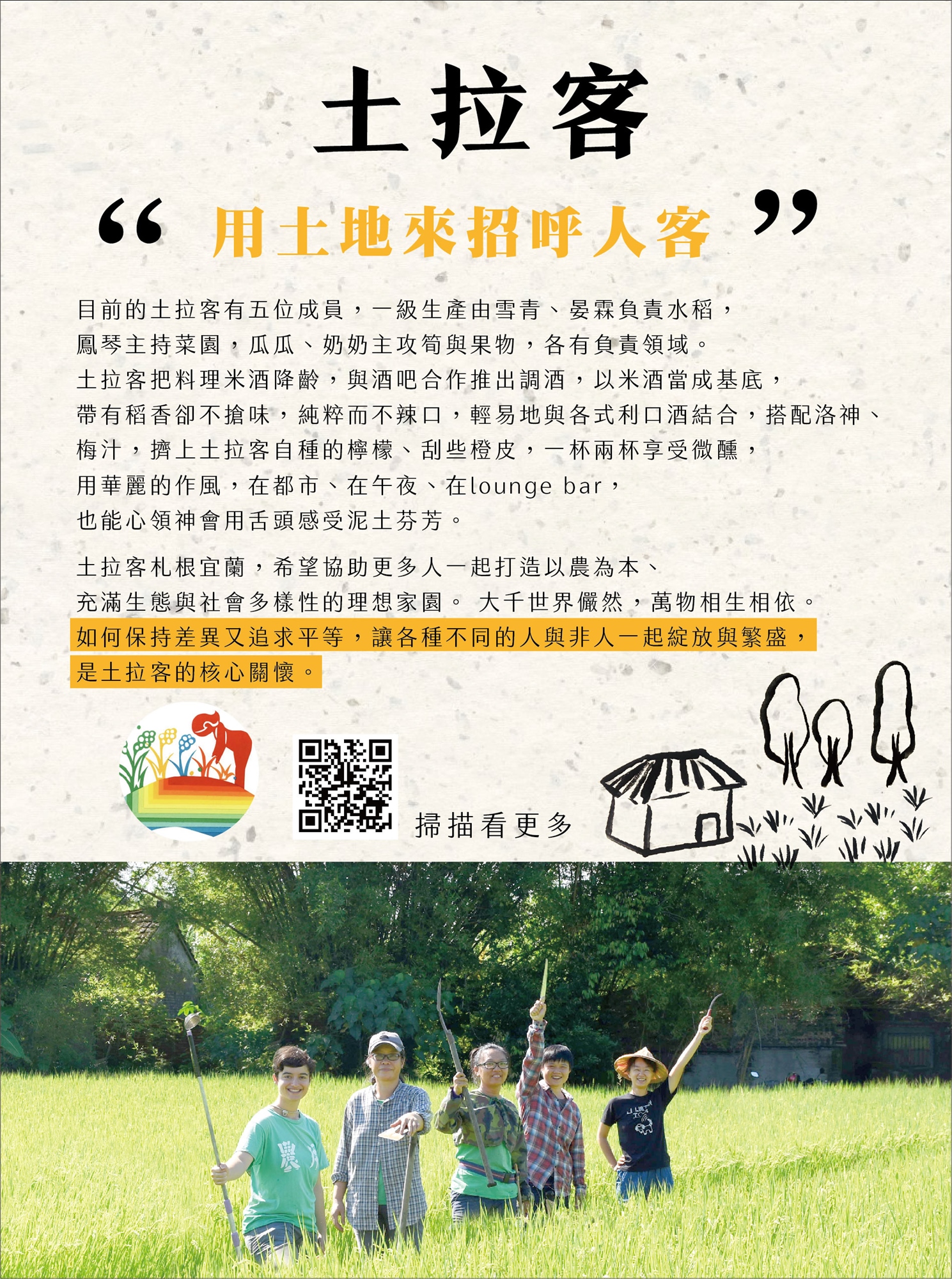 講者簡介:來自美國佛州的雪青,原本沒接觸過農業,來台灣以後認識了友善耕作社群,衝動決定搬來宜蘭開始種水稻。現在過著半農生活的雪青負責水稻生產。除了務農,雪青也從事文字翻譯工作、玩民謠樂團,也偶爾接相關農業議題的口譯工作。已經完全融入台灣農村生活的她希望可以留在台灣繼續跟土拉客們一起努力。
