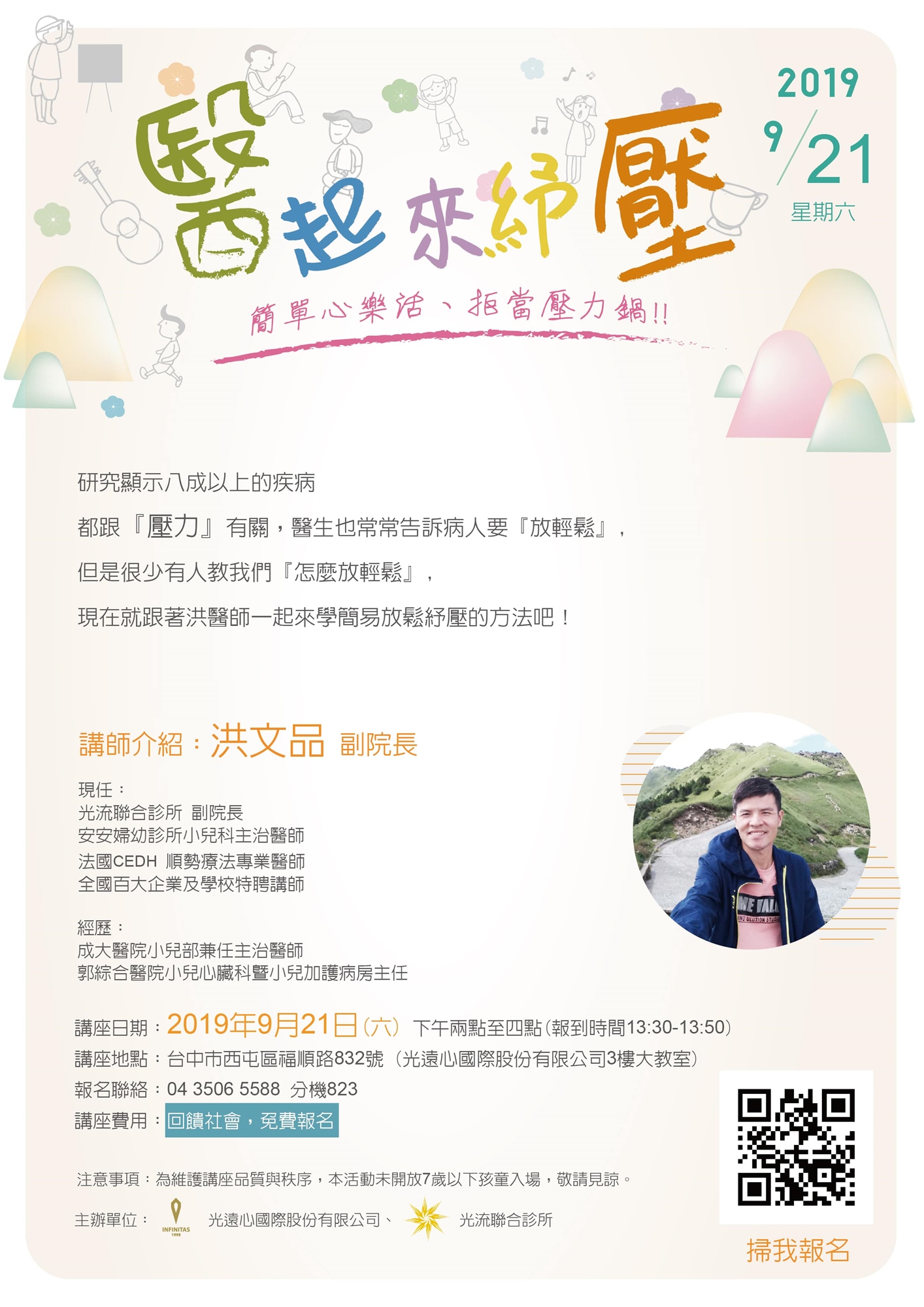 3.為維護講座品質與秩序,本活動未開放7歲以下孩童入場,敬請見諒。