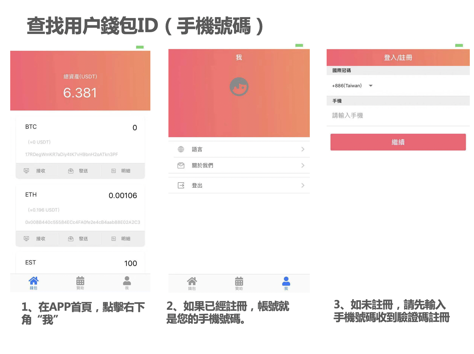 4. 建議可以試試從您其它錢包如imToken或交易所的USDT, BTC, ETH,轉帳到此錢包