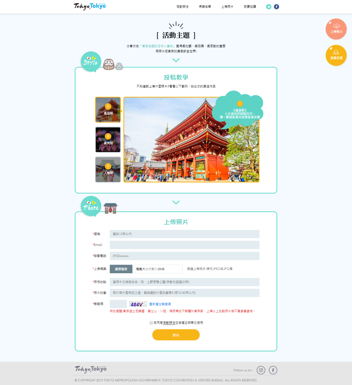 上傳一張在東京都內所拍攝的照片,並填寫地點與圖說。