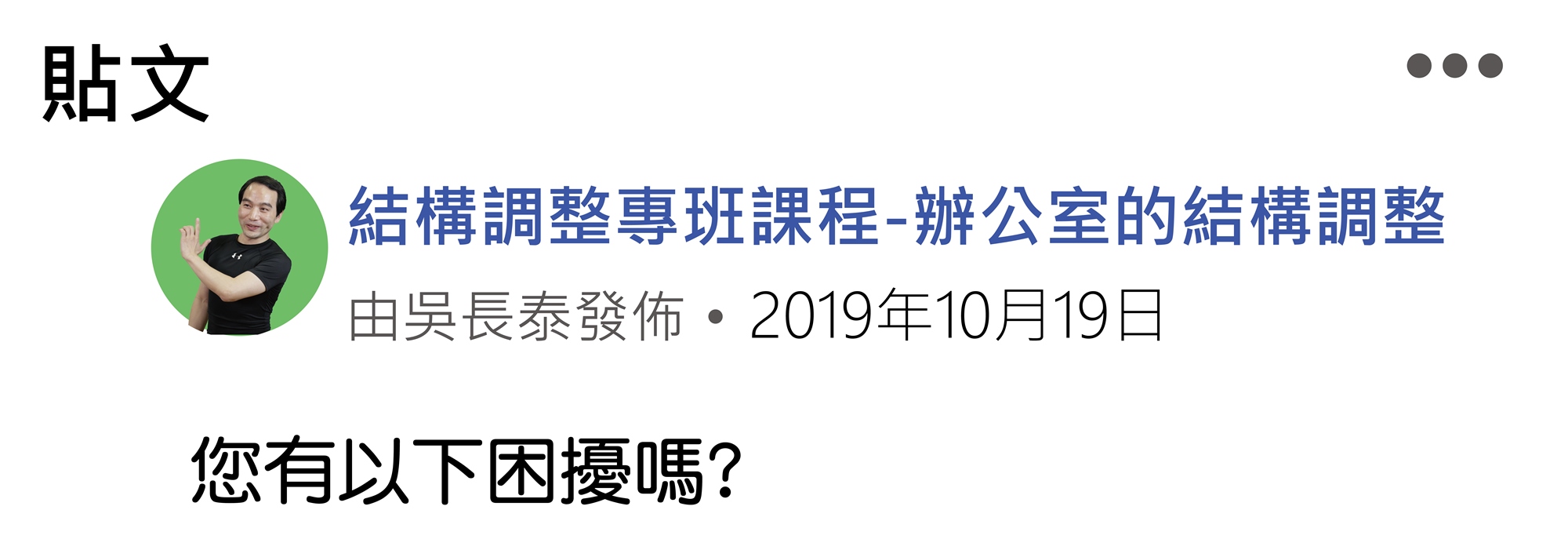 帶領許多朋友體驗結構調整運動的魅力,並且改善多年來的結構失衡問題。