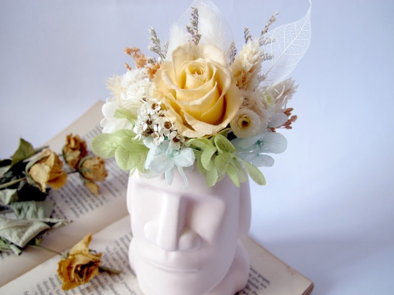 ▸ 永生花摩艾像寬度約 8 公分