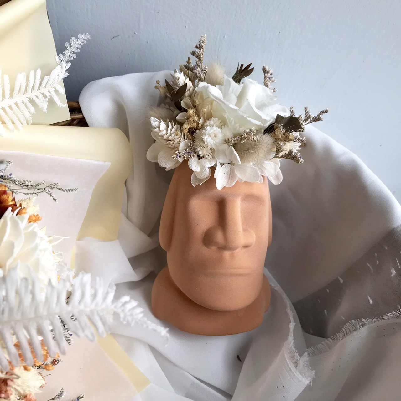 ▸ 永生花摩艾像高度約16.5公分