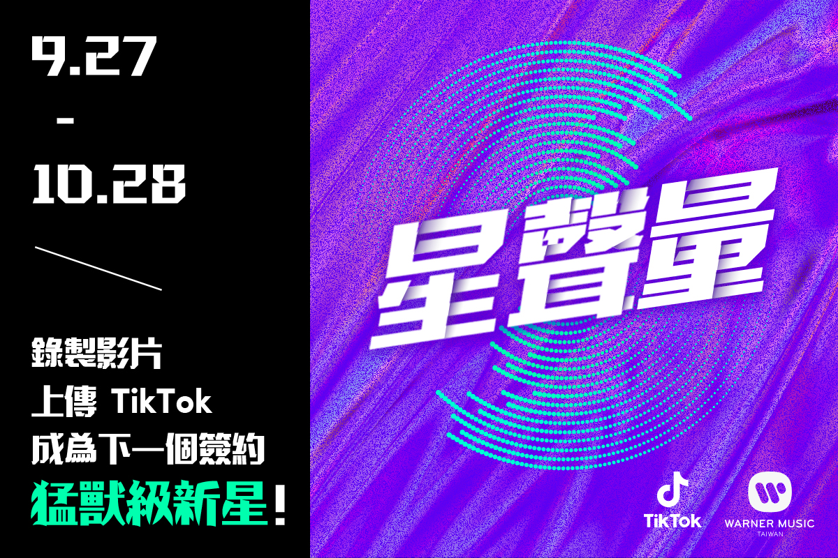 只要唱出聲,上傳 #歌唱短影音至 TikTok,hashtag #星聲量,就有機會成為華納音樂 WIN 潛力新星