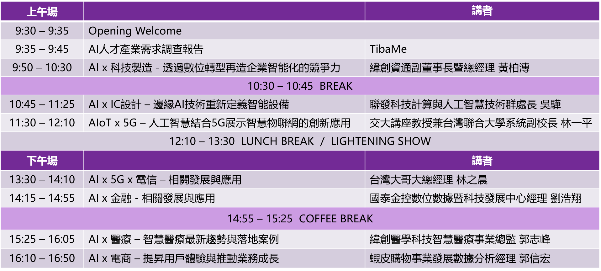 這一次,TibaMe不提供技術課程,我們盡心盡力、耗時砸本邀請各產業上的領導企業及其代表高層,站在企業高峰角度來為各位技術人員與主管,無私分享他們在這兩大關鍵趨勢下,如何落地並為企業帶來實際產能與成果!