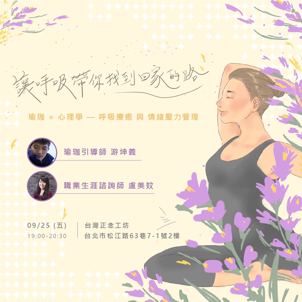 這場講座將由瑜伽引導師游坤義與職業生涯諮詢師盧美妏聯合帶領。