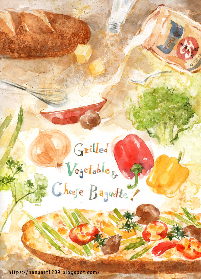 -焗烤/ 起司/ 蔬菜/ 麵包/ 食材 畫法