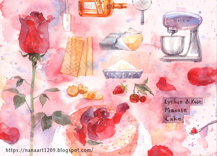 -荔枝玫瑰蛋糕/ 工具/ 食材 畫法
