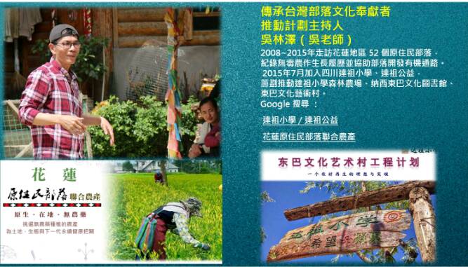 2015年7月加入四川達祖小學、達祖公益,籌劃推動達祖小學森林農場、纳西東巴文化圖書馆、東巴文化藝術村。