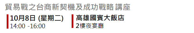 14:15 – 15:00 | 貿易戰之台商新契機 | 馬鐵英 星展研究部資深經濟學家 |