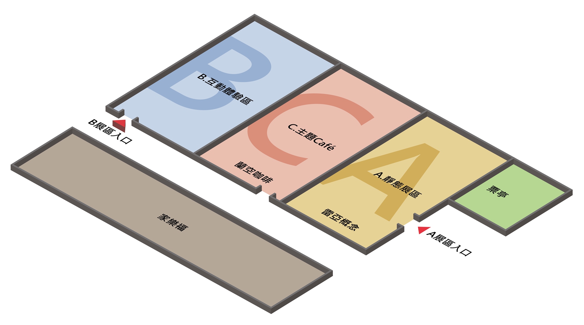 1. 購買全展區體驗套票可參觀A靜態展區及B互動體驗區。