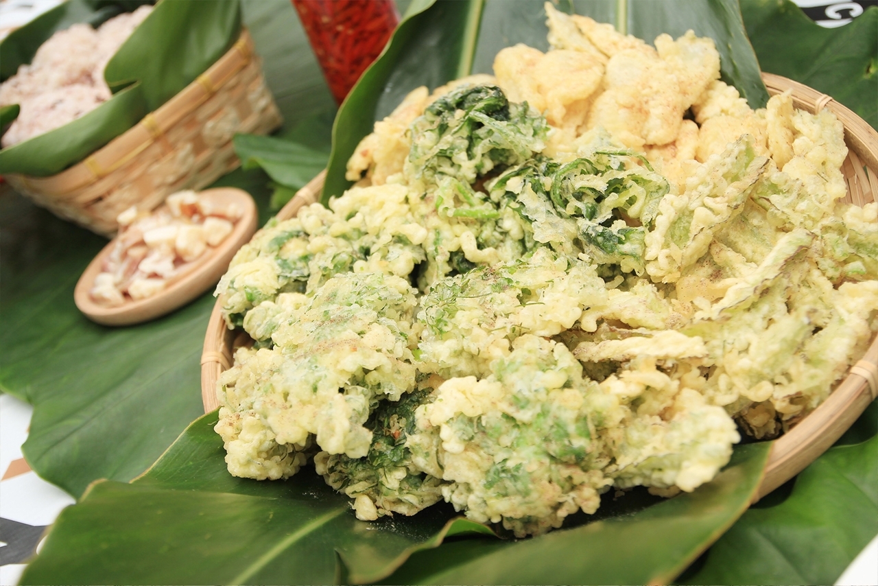 部落小農栽種各種當季野菜,部落媽媽將野菜做成天婦羅,成為小孩也搶著吃的點心。在一整天的活動到一段落後,品嘗野菜天婦羅及小點心,抱著心滿意足的心回家。