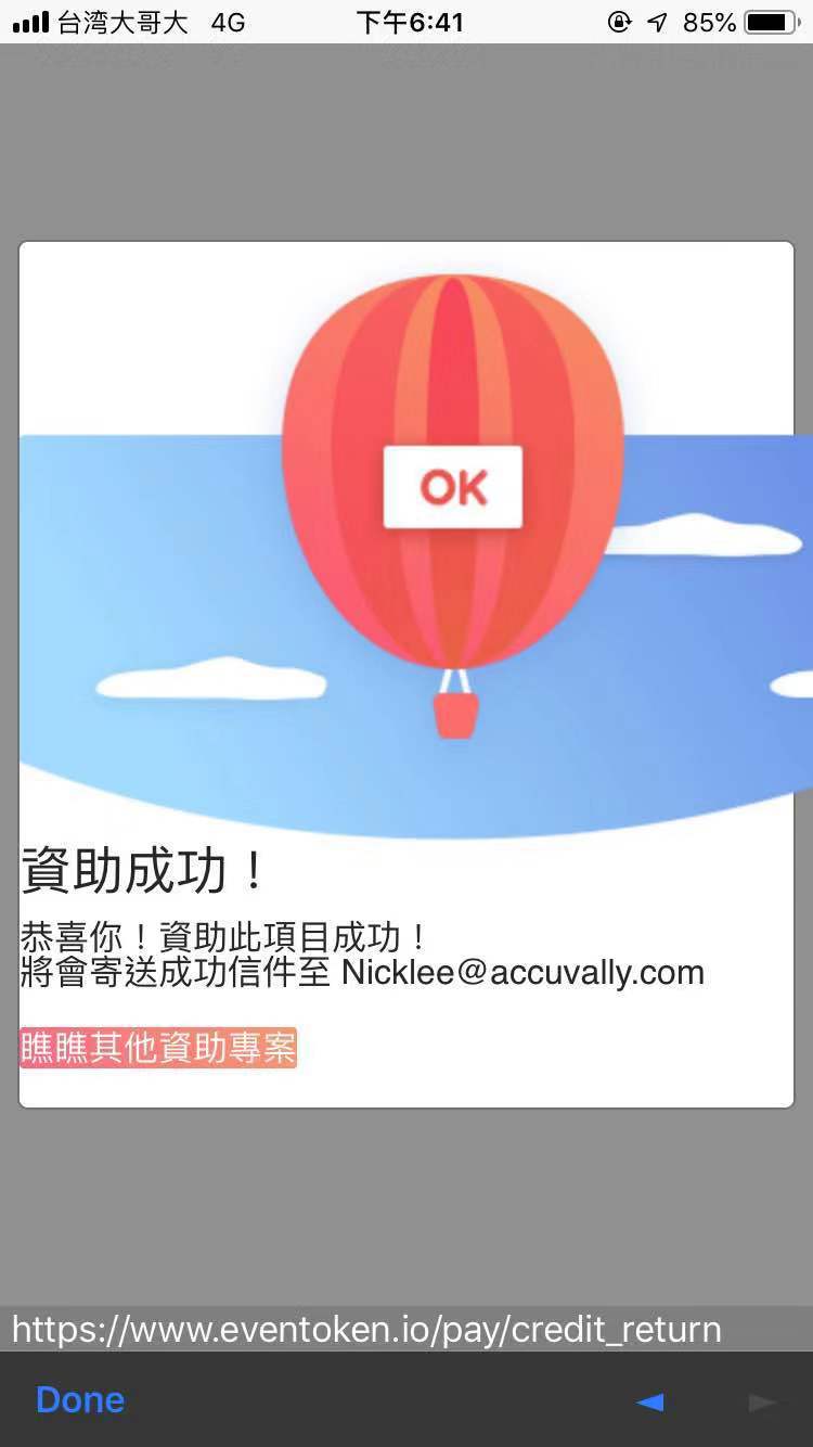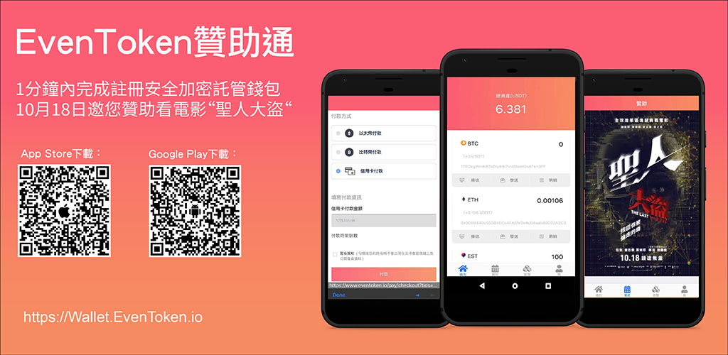 ♦ 手機打開瀏覽器點以下網址進入EvenToken贊助通註冊帳號密碼後贊助 : https://Wallet.EvenToken.io