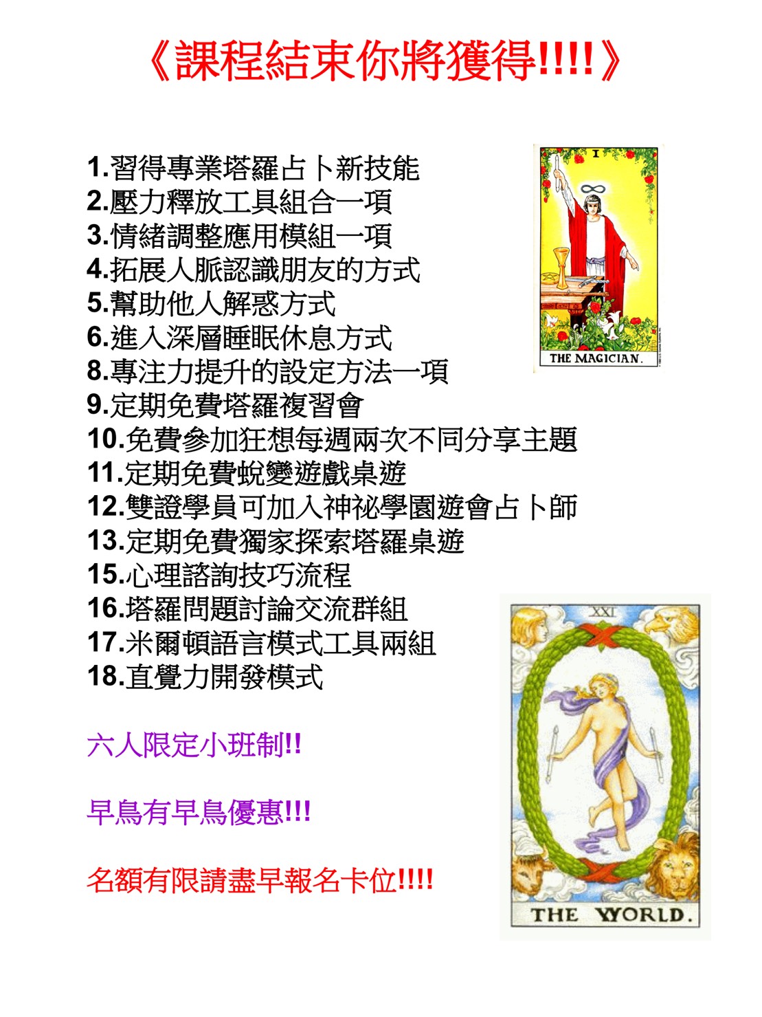 目前已培育出多位以上正職的塔羅占卜師