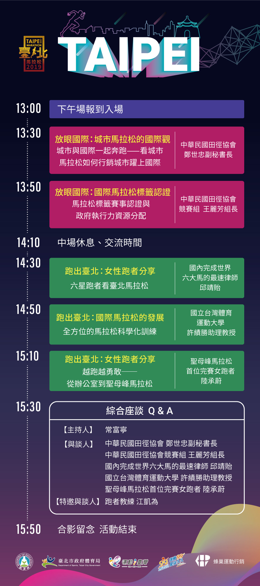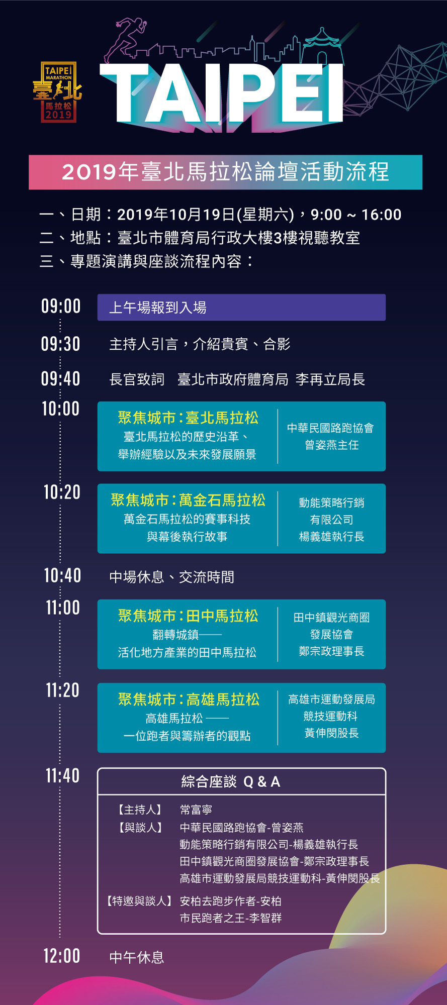 活動名稱:10/19 (六) 2019臺北馬拉松論壇