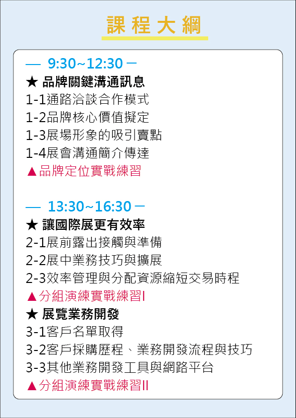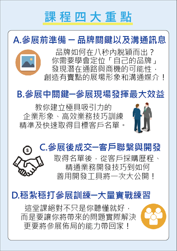 ★ 課程:超級參展力 ─ 讓公司參展獲利贏訂單實戰班