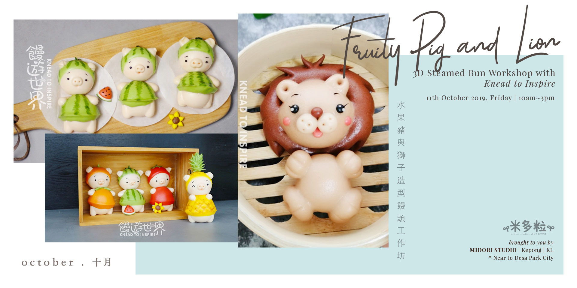 { Fruity Pig and Lion 3D Steamed Bun Workshop • 水果豬與獅子造型饅頭工作坊 }