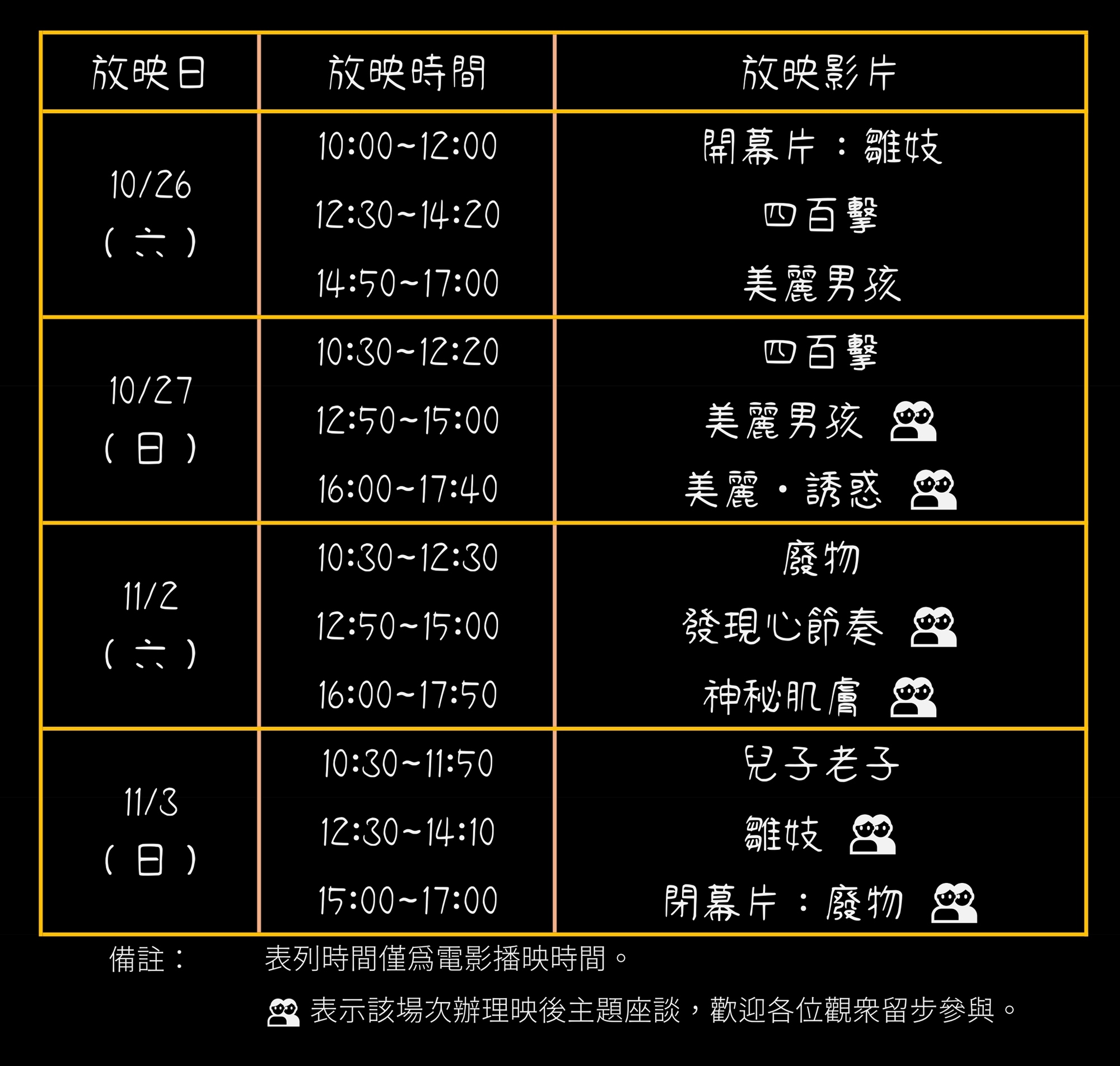 • 各場次將於放映時間開始前 15 分鐘,開放入場