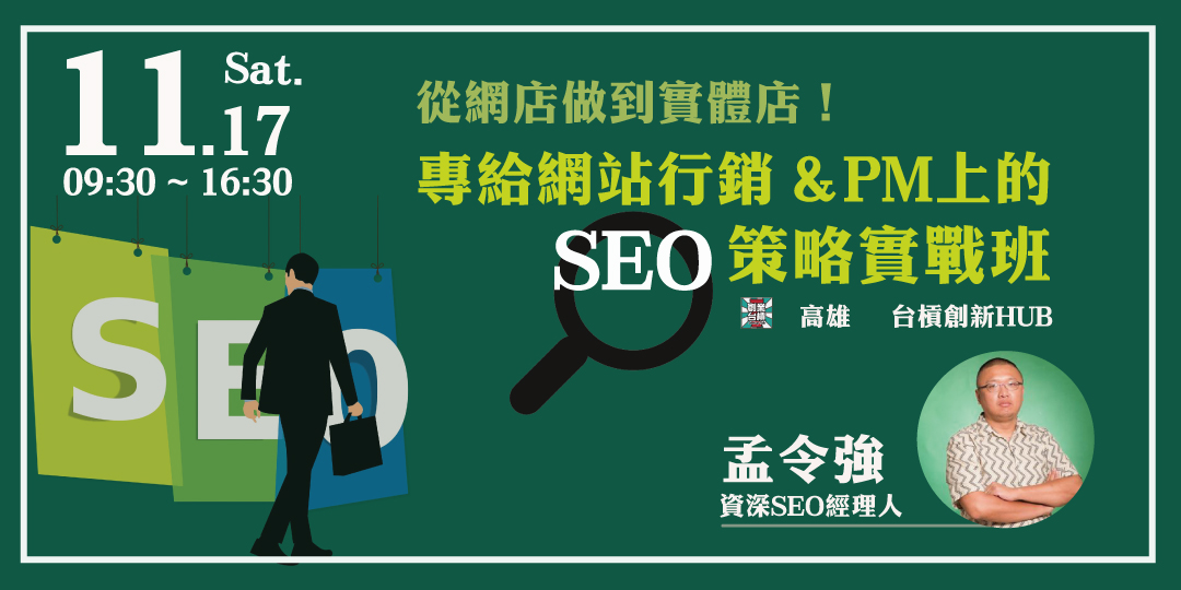 11/17(日)【數位行銷】從網店做到實體店!專給網站行銷 & PM上的SEO策略實戰班